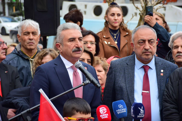 Törene CHP Bursa İl Başkanı Nihat Yeşiltaş, Bursa Milletvekili Orhan Sarıbal, Parti Meclisi Üyesi Canan Taşer, Osmangazi Belediye Başkanı Erkan Aydın, İlçe Başkanları, Parti Yöneticileri ve çok sayıda yurttaşların katıldığı tören, çelenk sunumu, saygı duruşu ve İstiklal Marşı'nın okunmasıyla başladı.