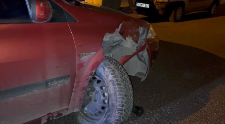 Olay, merkez Osmangazi ilçesi Altıparmak Mahallesi'nde meydana geldi. Bursalı Tahir Caddesi üzerinde alkol uygulaması yapan trafik ekipleri, şüphelendikleri 16 GT plakalı otomobili durdurmak istedi. Sürücü, ehliyetini vereceği sırada gaza basarak uygulama noktasında kaçtı. Uygulamadan kaçan aracın peşine düşen ekipler, şüpheli aracı Selimiye Mahallesi 1. Kara Osman Sokak üzerinde yakaladı. Şüpheli, ekip otosuna çarparak kaçmaya çalışsa da yakayı ele verdi. Kaza anı ise bir iş yerinin güvenlik kamerasına saniye saniye yansıdı.