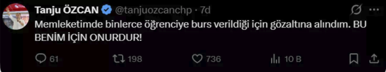 Sosyal medya hesabından bir açıklama daha yapan Özcan "Memleketimde binlerce öğrenciye burs verildiği için gözaltına alındım. Bu benim için bir onurdur!" ifadelerine yer verdi.