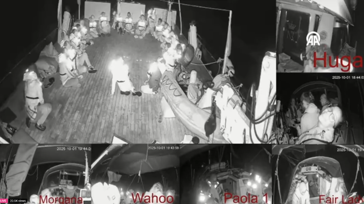 Gemilere bağlı olan canlı yayınların neredeyse tamamı kesildi. Gemilerin, uçakların ve İHA'ların filodaki aktivistleri çevrelediği aktarıldı. Sumud Filosu'nun etrafı kuşatıldı.