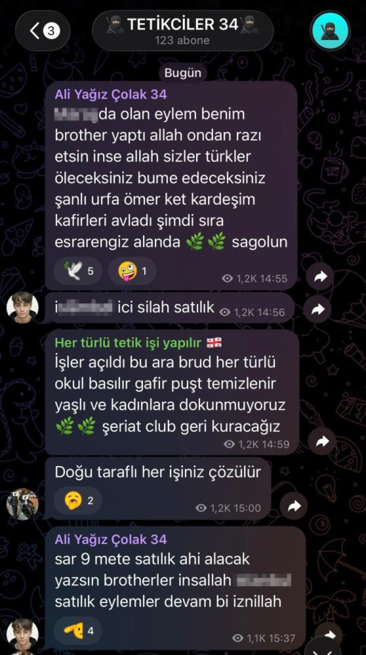 Kahramanmaraş ve Şanlıurfa’da meydana gelen okul saldırıları sonrası Telegram gruplarında saldırıları öven mesajlar kan dondurdu. Gruplarla yapılan konuşmalarda saldırganların övüldüğü ve yeni saldırılar için tarih verildiği görüldü. Emniyet güçleri, provokasyon içerikli paylaşımlar için inceleme başlattı.