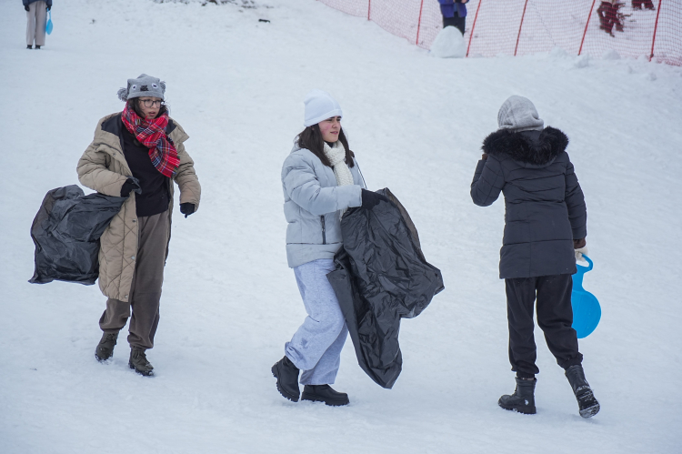 Sömestr tatilini fırsat bilenler Uludağ'da poşet ve kızakla kaydı