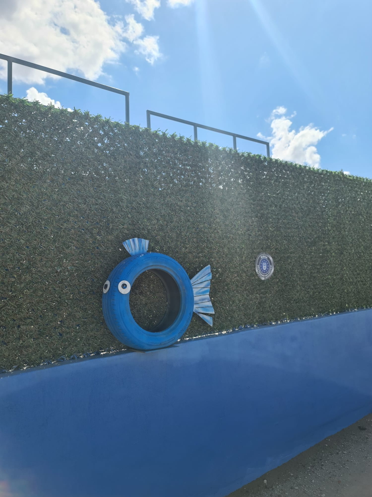 Sahillerdeki temizlik etkinliklerinde elde edilen kapaklarla ‘mavi bayrak’ temalı pano oluşturulurken, plastik şişelerden gemi maketi yapılarak çevre kirliliğine dikkat çekildi. Çevreye gelişigüzel atılan ve denizlerden çıkartılan lastikler ise ekipler tarafından atölyede temizlenip boyandıktan sonra balık figürü olarak tasarlanıp duvarları süsledi.