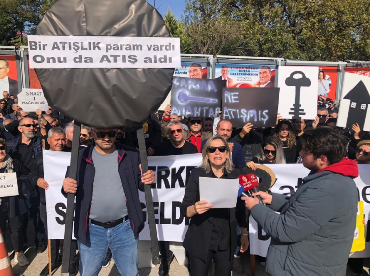Carrefour, Downtown, Babylon 1-3, Smart 1-5 gibi 10 dev projede 3.500'e yakın ailenin mağdur edildiğini belirten Dinç, "Bize maketler gösterdiler, güven verdiler, biz de yılların birikimini verdik. Şimdi ne evimiz ne de paramız kaldı" diye konuştu.