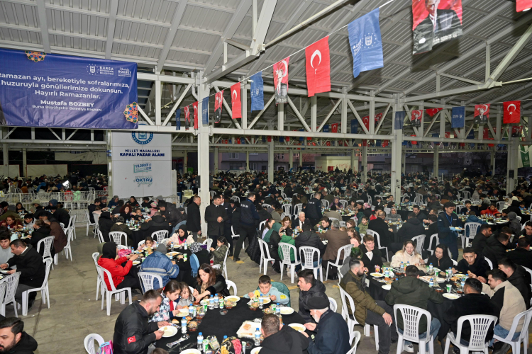 Ramazan’ın manevi iklimini çeşitli programlarla yaşatan Bursa Büyükşehir Belediyesi tarafından Fevzi Çakmak Katlı Otoparkı, Emirsultan Meydanı ve İnegöl İshak Paşa Meydanı Açık Otoparkı’nda her gün binlerce kişiye iftar veriliyor. Bursa Büyükşehir Belediye Başkanı Mustafa Bozbey ve eşi Seden Bozbey de yaklaşık 2000 kişinin katıldığı Yıldırım ilçesi Millet Mahallesi’ndeki iftar programında vatandaşlarla aynı sofrada buluştu. CHP İl Başkanı Nihat Yeşiltaş’ın da yer aldığı programda, vatandaşlar akşam ezanıyla birlikte oruçlarını açtı.