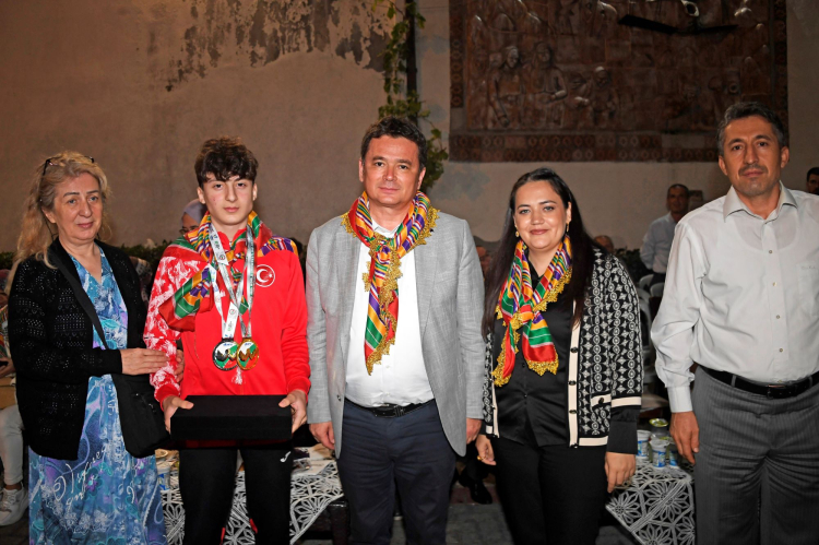 Gecenin sonunda Osmangazi Belediye Başkanı Erkan Aydın ve DAĞDER Genel Başkanı Derya Kaya Başak, Dünya Bilek Güreşi Şampiyonasında Milli formayla mücadele ederek sol kolda tüm rakiplerini eleyip dünya şampiyonu olmayı başaran ve dağ yöresine büyük gurur yaşatan Berat Demir’e plaket vererek tebrik etti.
