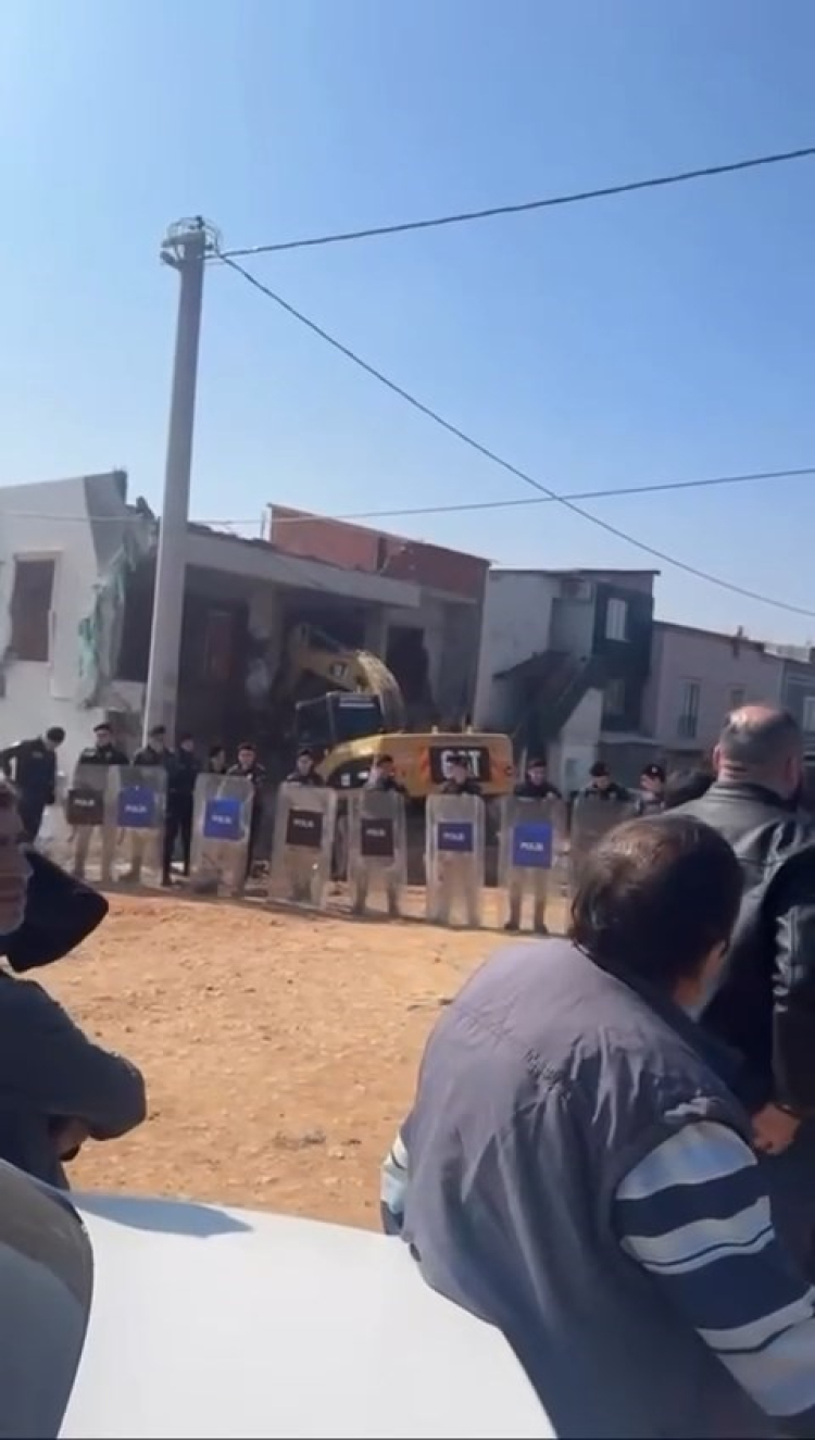 Yıkım için gelen iş makinelerini gören evin sahipleri ve mahalleli yıkılmaması için ortalığı ayağa kaldırdı. İş makinelerinin önüne geçen vatandaşlar, çevik kuvvet ve zabıta ekiplerinin müdahalesiyle yıkım alanından uzaklaştırıldı.