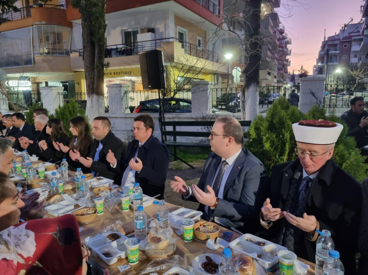 İftar yemeğine Osmangazi Belediye Başkanı Erkan Aydın’ın yanı sıra Gümülcine Başkonsolosu Aykut Ünal, Kozlukebir Belediye Başkanı Erdem Hüseyin, Gümilcine Türk Gençler Birliği Başkanı Sedat Hasan, İskece Müftüsü Mustafa Trampa, Osmangazi Belediye Başkan Yardımcıları ve Meclis Üyeleri ile Gümülcine, Dedeağaç ve İskeçe’den gelen soydaşlar katıldı. Cami avlusunda gerçekleştirilen iftar yemeğinde, akşam