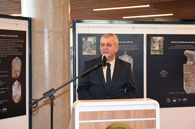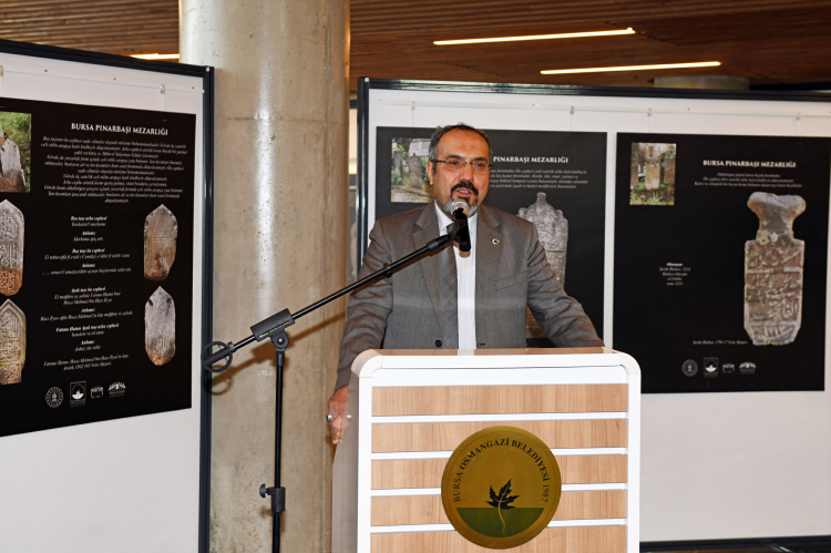 Serginin açılış töreninde konuşan Uludağ Üniversitesi Fen Edebiyat Fakültesi Sanat Tarihi Bölümü Başkanı Prof. Dr. Bülent Nuri Kılavuz, Türk sanatında heykelin çok yaygın olmadığını hatırlatıp, "Ama emin olun bu mezar taşlarının her birisi en az heykellerle yarışacak derecede bir öneme sahip. Çünkü bizi anlatıyor. Bizim kültürel gelişimimizi, bizim tarih içindeki misyonumuzu, sanatımızı, kültürümüzü, dilimizi hatta kendi dil gelişimimizi mezar taşlarında görebiliriz" dedi. Mezar taşlarının Türk sanatının en önemli temsilcilerinden olduğunu dile getiren Kılavuz, "Bursa, coğrafyası Türk kültürü ve sanatının en iyi şekilde filizlendiği, geliştiği, Orta Asya’dan devam eden genlerin en iyi şekilde ortaya konulduğu bir yer. Türk sanatının karakteristik özelliklerinden biri şüphesiz, ata kültürün bir devamı olan mezar taşlarıdır. İnsana verilen, ataya verilen değeri, yanımızda olan, bir zamanlar birlikte olduğumuz insanların bu dünyadan ayrıldıktan sonra hala varlığını gösteren en önemli simgelerdir. Türk kültüründe ölmek, yok olmak diye bir şey yok. Uçmak var, öbür dünyaya gitmek var. Ve mezar taşları Türk kültürünün en güzel şahidi. Mezarlıkları en iyi şeklide deşifre edip Türk sanatına katkı sağlamamız gerekiyor" diye konuştu.