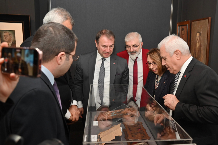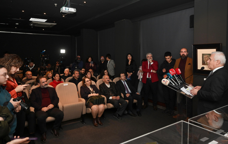 Konuşmaların ardından Başkan Bozbey ve beraberindekiler, Nâzım Hikmet’e ait eserleri yakından inceledi.
