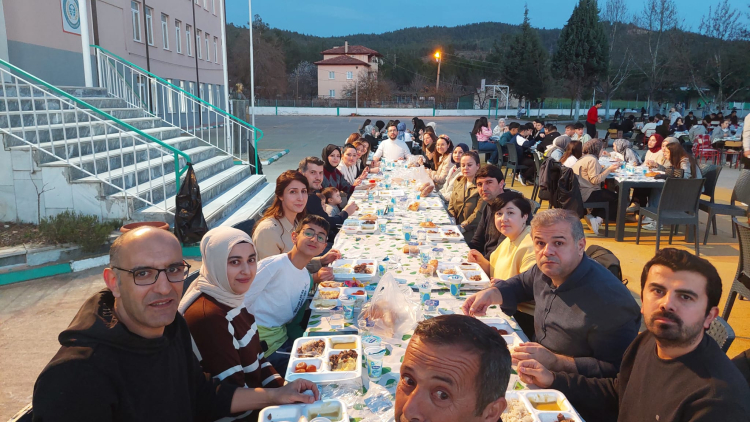 Her sene düzenlenerek geleneksel hale getirilen iftar yemeği ile milli eğitim yöneticileri ile öğrenciler bir arada iftar yapmanın mutluluğunu yaşadılar. Türkan Sait Yılmaz Anadolu lisesi okul Müdürü Mehmet Aktepe iftar yemeğinin düzenlenmesinde katkıları olan ilçe esnafına teşekkür etti.