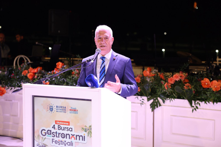 Gala yemeğinde konuşan Büyükşehir Belediye Başkanı Mustafa Bozbey, Bursa’nın köklü mutfak kültürünü dünyaya tanıtmak ve gastronomi turizmine yeni bir soluk kazandırmak adına önemli bir adım attıklarını söyledi. 4. Uluslararası Bursa Gastronomi Festivali açılışının adeta şölen tadında gerçekleştiğini belirten Başkan Bozbey, “Festivalimiz, dostluğu, kardeşliği, paylaşmanın bereketini ve Bursamızın topraktan tabağa uzanan tüm değerlerini yansıtan bir şölen niteliği taşıyor. ‘Tescilden Tabağa Bursa Gastronomisi’ adlı eşsiz eseri Bursamıza kazandıran başta Akademisyen Yazar Fatih Yıldırım’a, fotoğraf ve video çekimlerinden düzenlemelere kadar emeği geçen herkese teşekkür ediyorum. Festivalimizin, Bursamızın köklü mutfak kültürünü dünyaya tanıtacağı dolu dolu bir şölen olmasını diliyorum” dedi.
