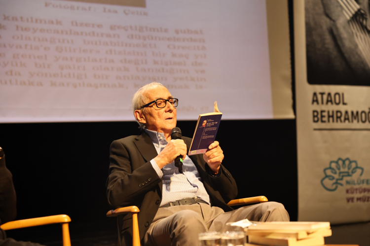 Söyleşinin moderatörü yazar Turgay Fişekçi ise Türk şiirinin tarihsel evrimini anlatarak Ataol Behramoğlu’nun edebiyatımızdaki yerine değindi. Behramoğlu’nun şiirini “hayattan gelen organik şiir” olarak tanımlayan Fişekçi; şairin gençlik yıllarındaki toplumsal bilincine, 12 Mart ve 11 Eylül darbesi dönemlerinde yaşadığı zorluklara, hapis ve sürgün yıllarına dikkat çekti. Fişekçi, Behramoğlu’nun hapiste kızı için yazdığı “Kızıma Mektuplar” eserini Türk şiirinin en lirik baba-çocuk şiirleri arasında göstererek, “Ataol Behramoğlu, sadece şiiriyle değil, insanlığıyla da 60-70 yıldır bu ülkenin kültür hayatının anıt kişiliklerinden biri olmuştur” ifadelerini kullandı.