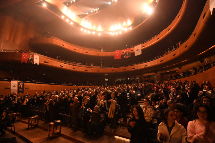 Panelin ardından ‘Yılın Aydını 2025 Yaşar Kemal’ sergisinin açılışı gerçekleştirilirken, yazarın edebiyat tarihine damga vuran eserleri ile hayatına dair anekdotlara yer verildi. Sözün büyüsünü taşıyan yazara saygı duruşu niteliğindeki sergiyi gezen Osmangazi Belediye Başkanı Erkan Aydın, daha sonrasında sergilenen ‘Ağrı Dağı Efsanesi’ tiyatro oyununu da yakından takip etti. Ayakta alkışlanan oyun sonrası sahneye gelerek, oyuncuları tek tek tebrik ederek teşekkürlerini ileten Başkan Aydın sanatseverlere seslendi.