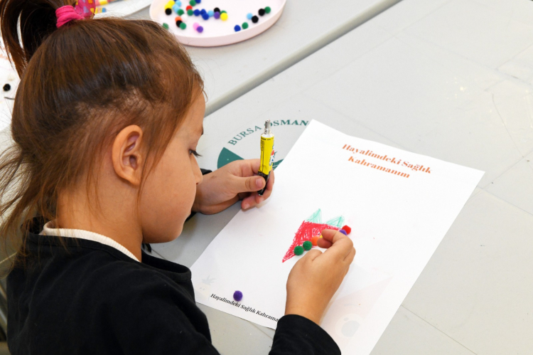 Hayalimdeki Sağlık Kahramanı Atölye çalışmasına katılan çocuklar böyle faydalı ve eğlenceli atölye çalışması düzenlediği için Osmangazi Belediye Başkanı Erkan Aydın’a teşekkür etti.