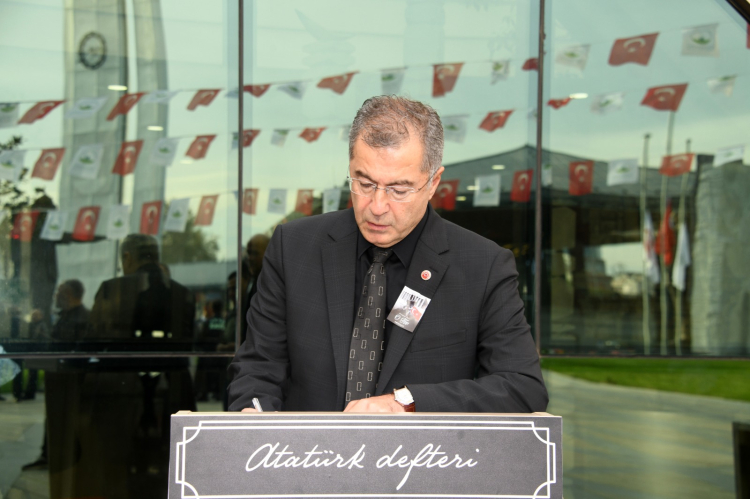 Tören sonunda ise Atatürk defteri köşesinde katılımcılar, Atatürk’e olan sevgi, minnet ve özlemlerini dile getiren satırlar yazdı.